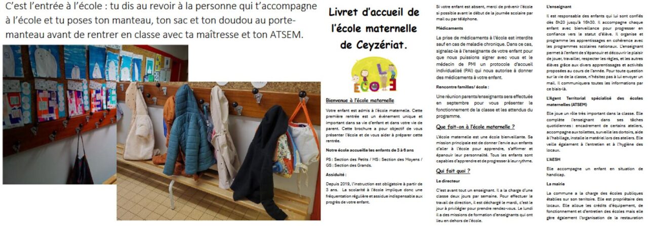 - Exemples de livrets d’accueil pour les parents et pour les enfants à l’école du vallon de Ceyzériat