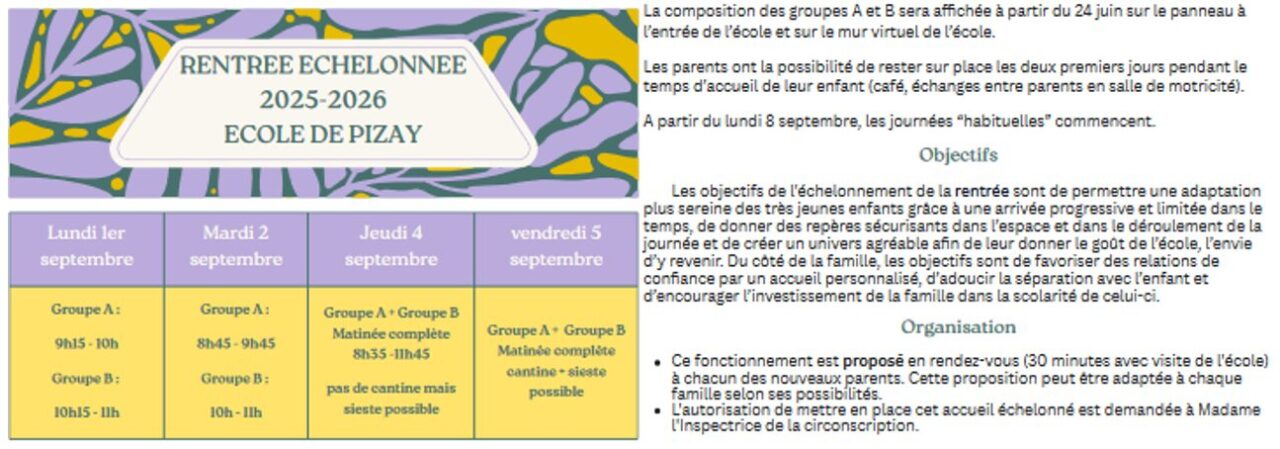 - Exemple d’une proposition d’organisation de rentrée échelonnée faite aux familles à l’école de Pizay