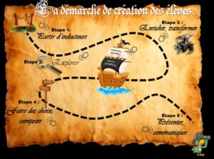 Créer à l’école, ce n’est pas seulement un aboutissement, la production d’un travail, d’une trace artistiques ou culturelle. C’est surtout s’engager dans un processus. Une démarche patiente, progressive, qui commence souvent par la rencontre – celle d’un artiste, d’une œuvre, d’un lieu – puis se prolonge dans la copie, l’exploration, l’imprégnation, la tentative, l’erreur, le recommencement. Elle n’impose pas, elle propose. Elle ne dicte pas de réponse, elle appelle des questions. Elle transforme la classe en atelier, en laboratoire du sensible et pourquoi pas en terre d’aventures.