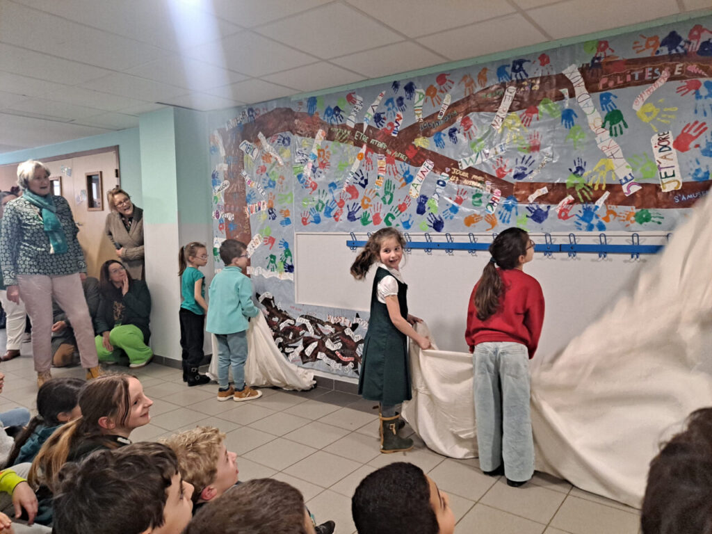 À la suite de la journée NAH du 7 novembre dernier, un enseignant de CM1-CM2 de l’école élémentaire des Vertes Campagnes a poursuivi le travail de sensibilisation avec ses élèves. Lors d’un temps d’échange, l’idée de réaliser une fresque impliquant l’ensemble des acteurs de l’établissement a émergé.